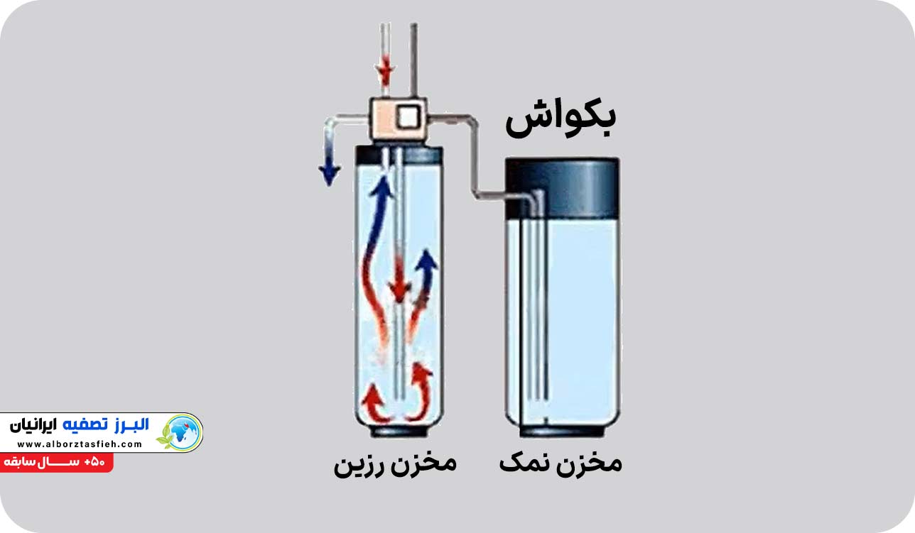 بک واش سختی گیر رزینی فرایندی است که با شستشوی رزین، رسوبات و ناخالصیها را از بین میبرد و کارایی سختیگیر را افزایش میدهد. بکواش از مهمترین مراحل شستشوی دستگاه است. در زمان کار دستگاه و در مرحله سرویس، عمل سختیگیری انجام میگیرد. در این مرحله یونهای سدیم (Na) موجود در رزین جایگزین یونهای رسوبزا میشوند. به این ترتیب، یونهای کلسیم و منیزیم که عامل اصلی شکل گیری رسوبات هستند، از آب حذف میگردند.